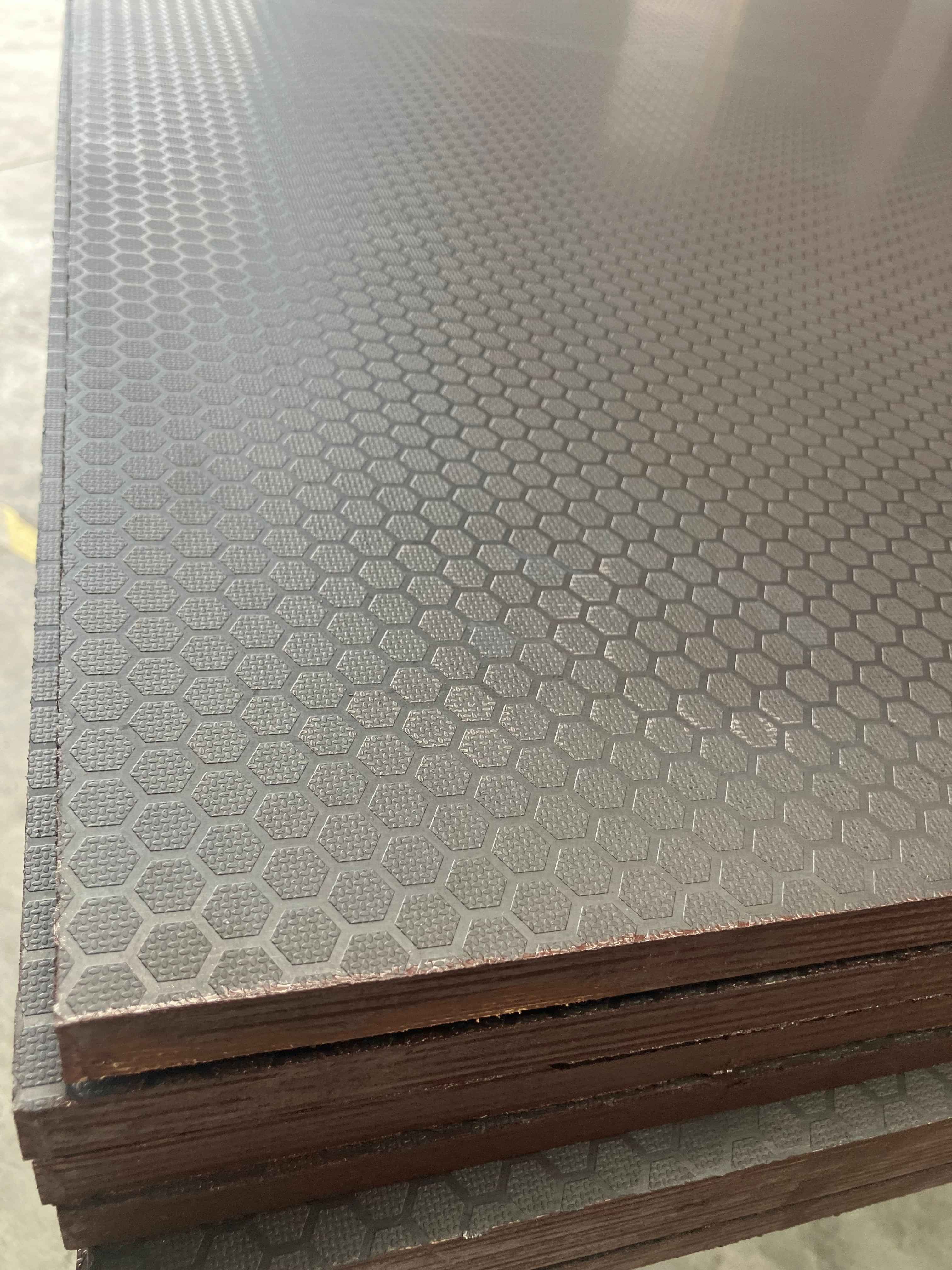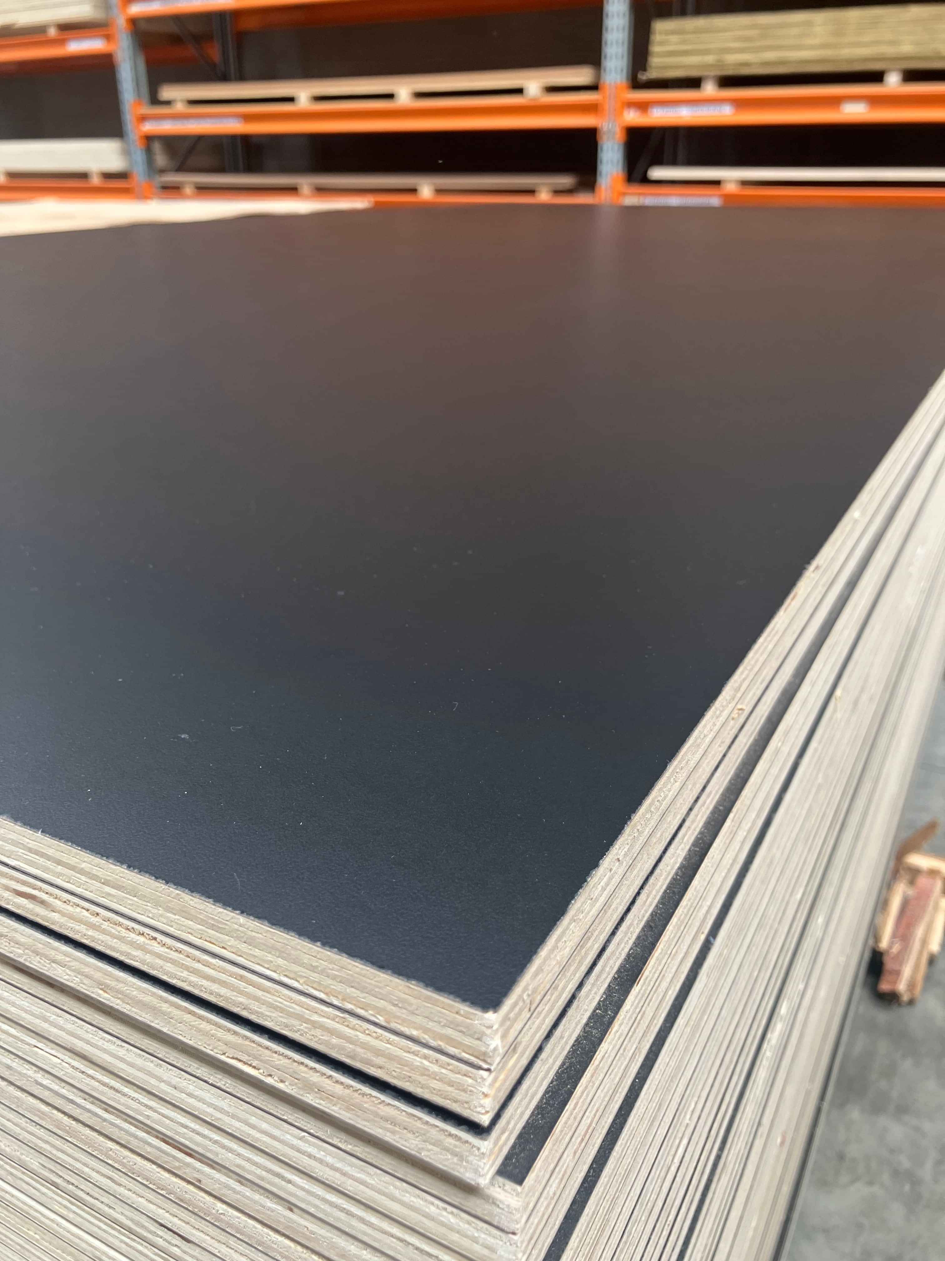 Reverse side has a black film face hot pressed to the plywood as a moisture barrier.